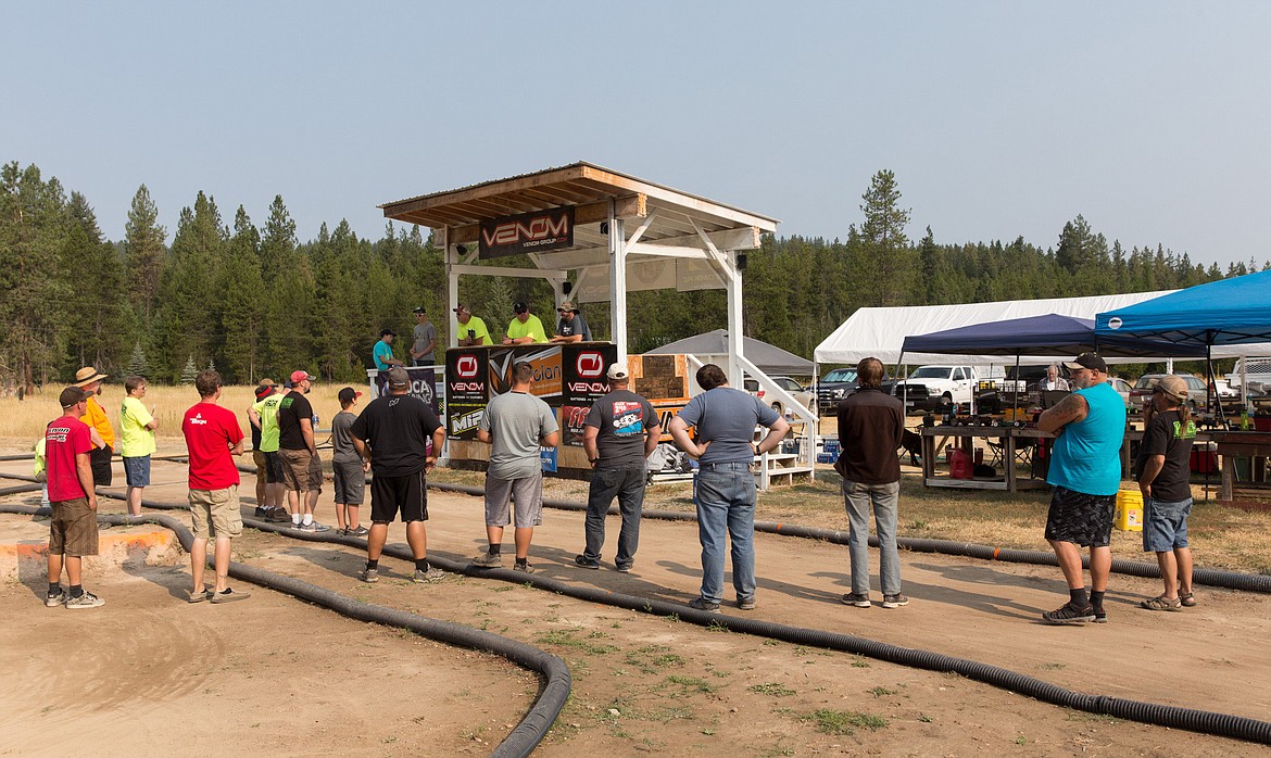 Racers gather before the start of the two-day Hot August Showdown remote-control racing event in Libby Saturday, Aug. 5, 2017. The annual event is sponsored by Kootenai RC Racers, a group of about two dozen enthusiasts of the sport. (John Blodgett/The Western News)