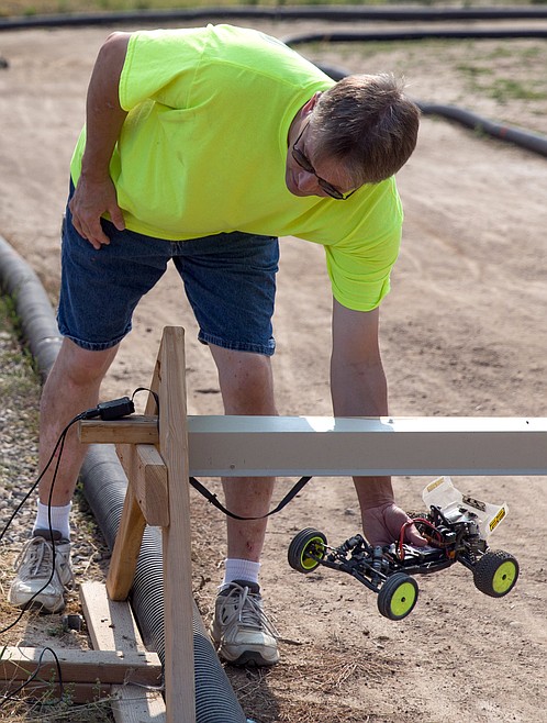 Richard Porter pilots his remote-control race car during Hot August Shown in Libby Saturday, Aug. 5, 2017. (John Blodgett/The Western News)
