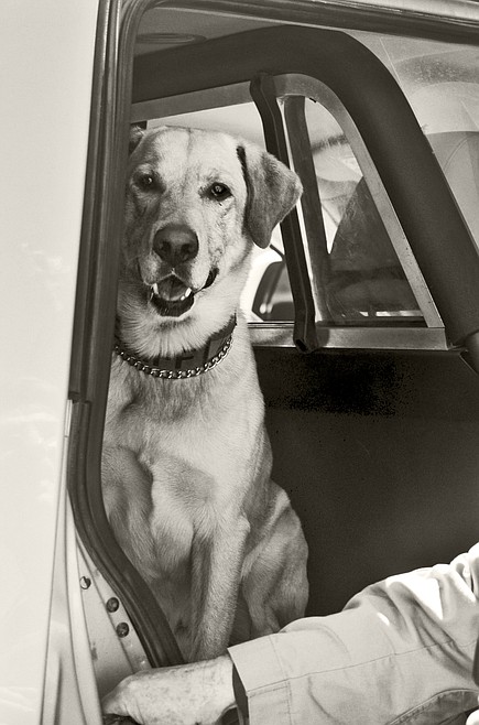 Max, for this exercise, was on a leash and became very enthused at the opportunity to go to work. His body structure changed and his nose began scouring all sides of the first two vehicles.