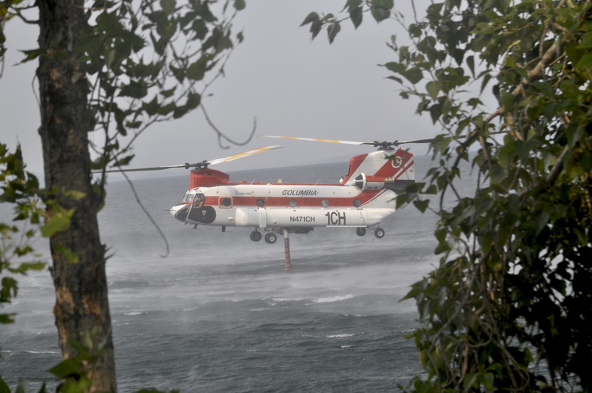 While he shared his plan, two helicopters filled water buckets nearby in Flathead Lake.