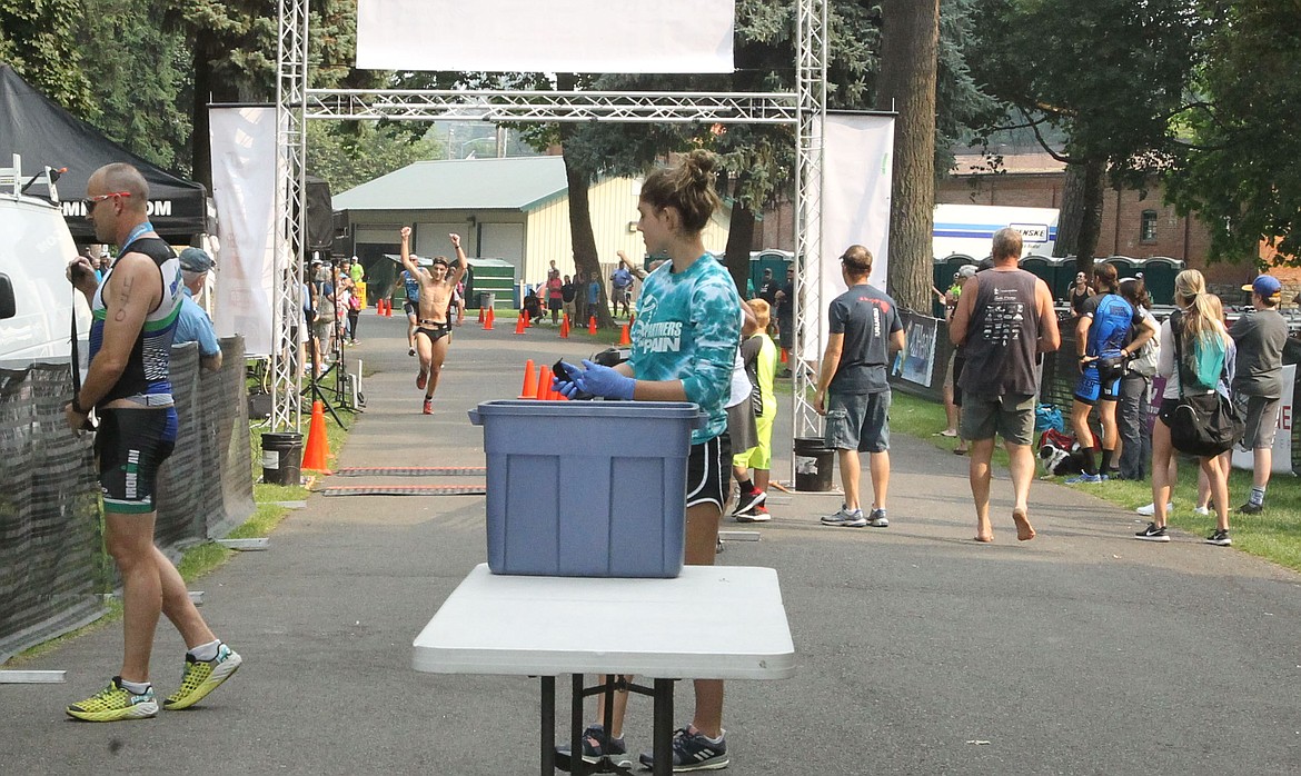 "I'm feeling great. It's an awesome race, it's our favorite race of the year," said George Dahl of Spokane, whose three kids greeted him with hugs after he completed the triathlon. "We love the event, the venue, the energy around it."