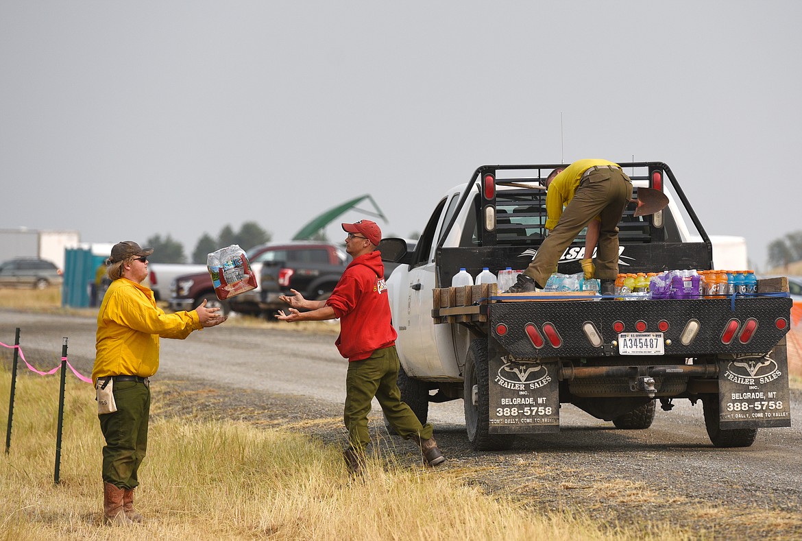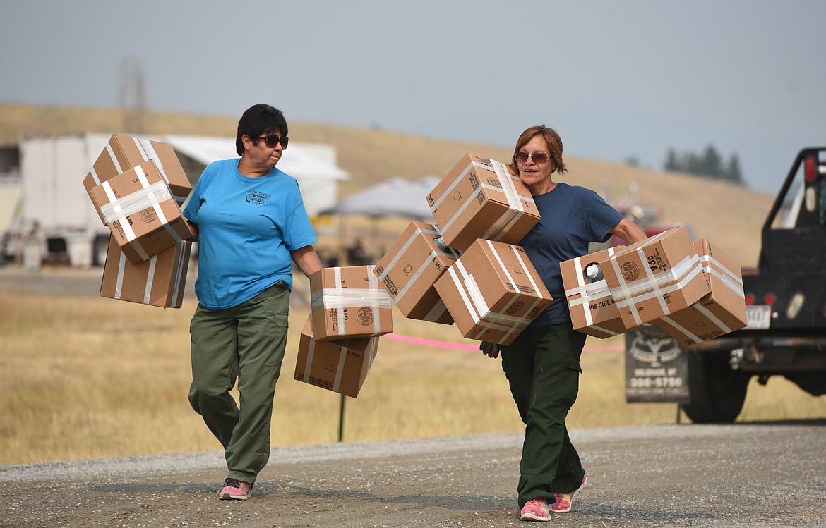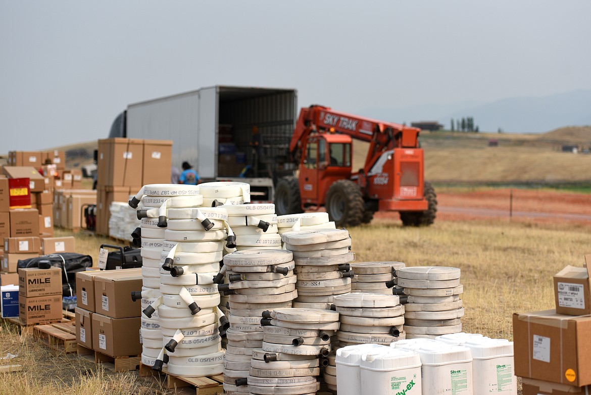 Supplies are stacked at the Gibralter Fire Camp near Eureka on Friday. (Aaric Bryan/Daily Inter Lake)