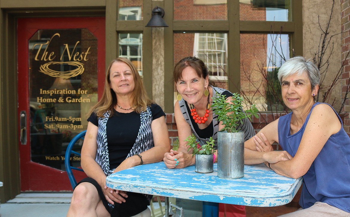 All three sisters grew up in Bonners Ferry. Wombacher now resides in California, where she contributes to the business as a buyer, using her graphic arts background to choose beautiful new and antique items to bring back to The Nest.
