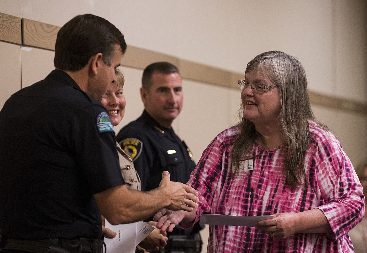 About 170 guests attended the luncheon, which included a light lunch, social time and the hauntingly beautiful viola and violin playing of Harmony Ranch founder Diana Clemons. Honored guests Kootenai County Sheriff Maj. Kim Edmondson, Coeur d'Alene Police Chief Lee White and Post Falls Police Chief Scot Haug distributed the checks and congratulated recipients when they were called to the stage.