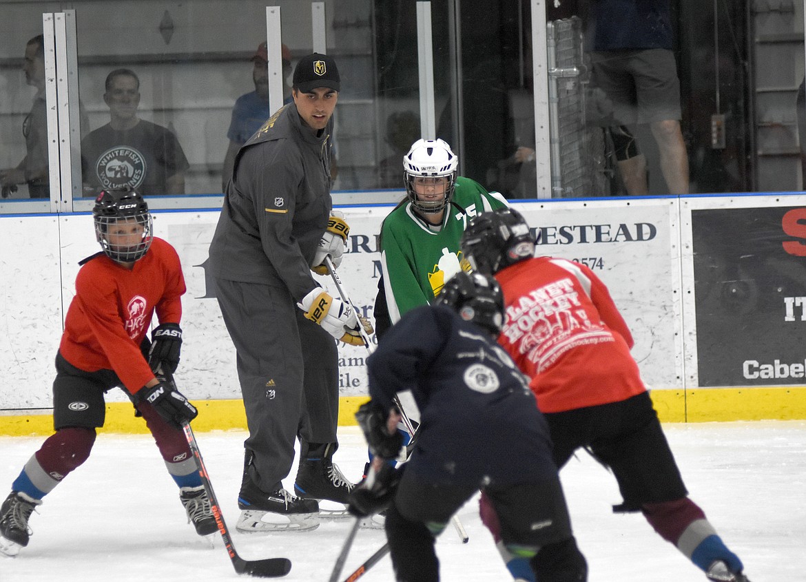 Players rotated around through several drill stations on the ice, with Golden Knights players Jake Bischoff and Alex Tuch and Craven working with the young players in attendance.