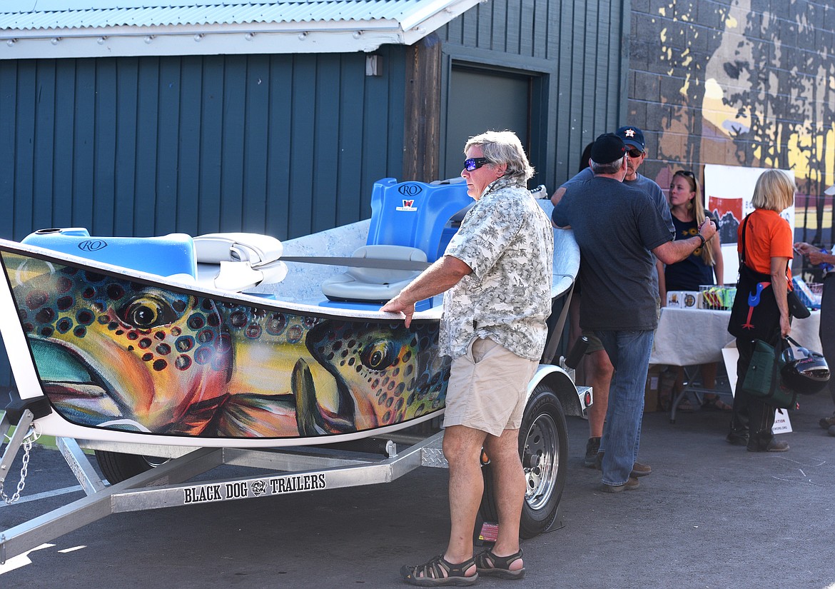 Courtney Stone of Glacier Guides Montana Raft explains what the guide service has to offer during the Last Best Outdoors Fest on Thursday. (Aaric Bryan/Daily Inter Lake)