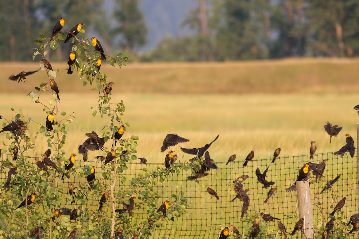 Yellow-headed blackbirds are beginning to congregate in large flocks, the males a sea of bright bumblebee-like colors. Like synchronized swimmers, these enormous flocks seem to pour fluidly from one tree to the next, or across the open fields and wetlands.