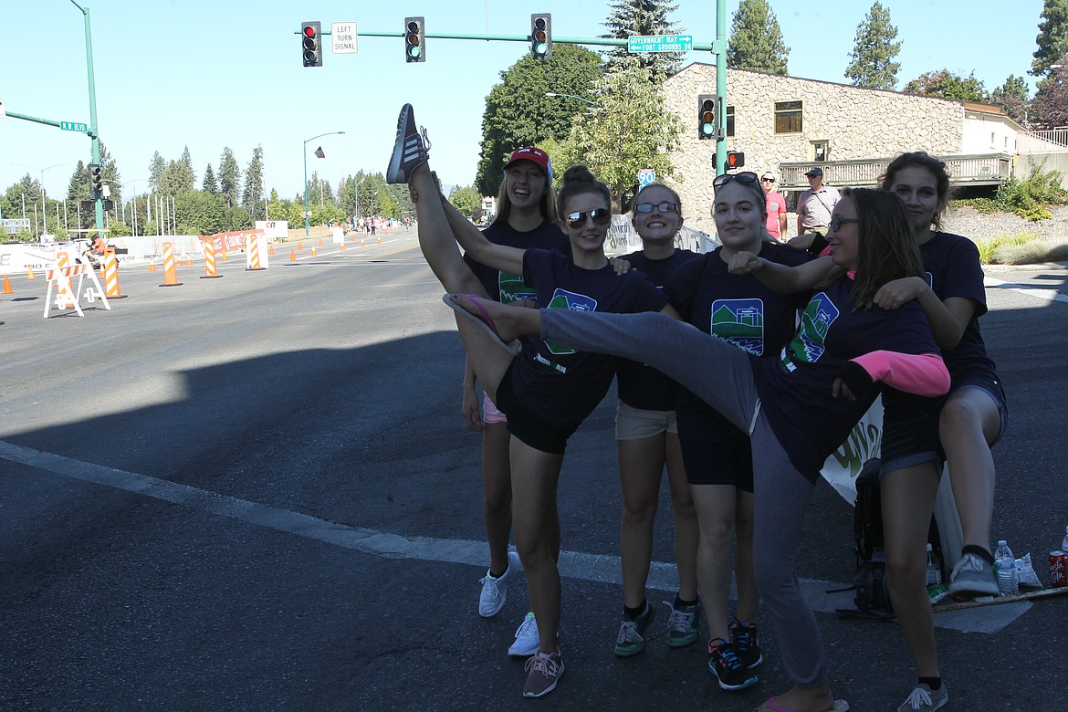 The official support on the course is just as important, like security that kept pedestrians from bumbling into the athletes' path of travel at designated crossings. But who would expect the Post Falls High School dance team to be the volunteer muscle?