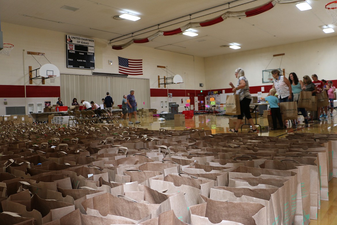 On Sunday and Monday, Angels volunteers spent the mornings bagging up all of the supplies and organizing them for Tuesday's distribution in the Farmin-Stidwell Elementary School gymnasium.