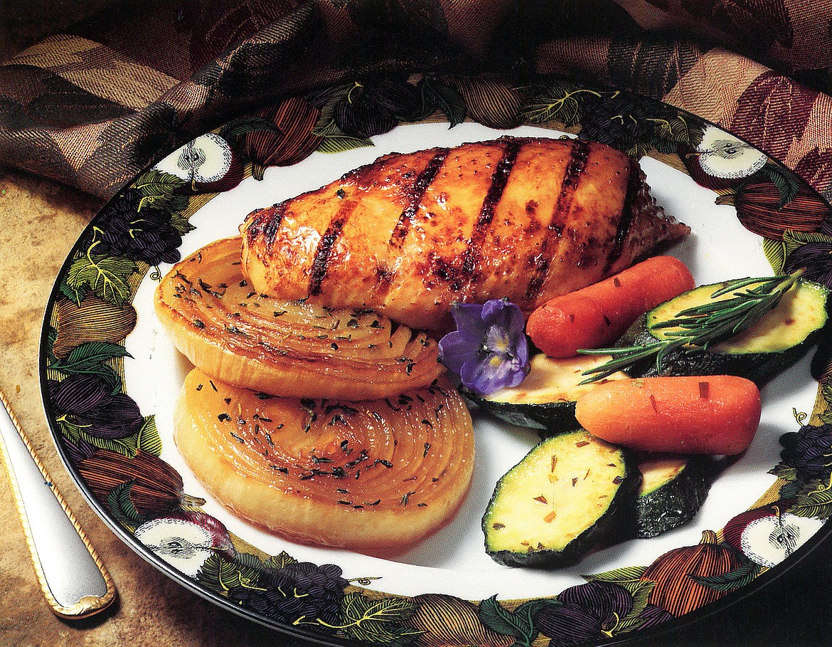 Onions, often overlooked as a main vegetable, are one of the most versatile when cooked, which sweetens and mellows them, and accept a variety of herb/spice seasonings. Slice (as in our photo) or bake them — as in the following recipe. Walla Walla Sweets are best but large yellow or Sweet Spanish onions will do very nicely as well.