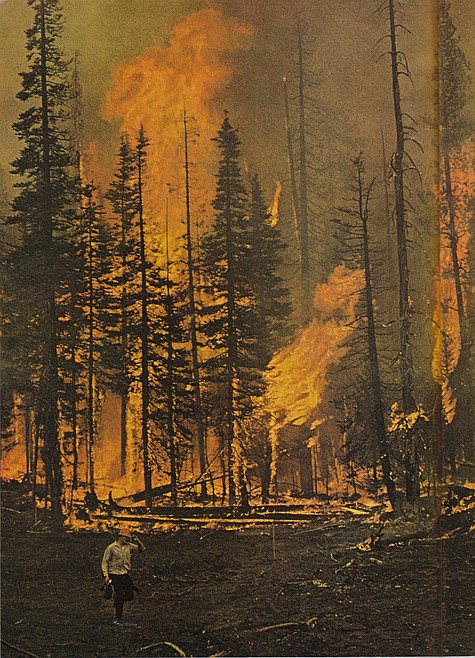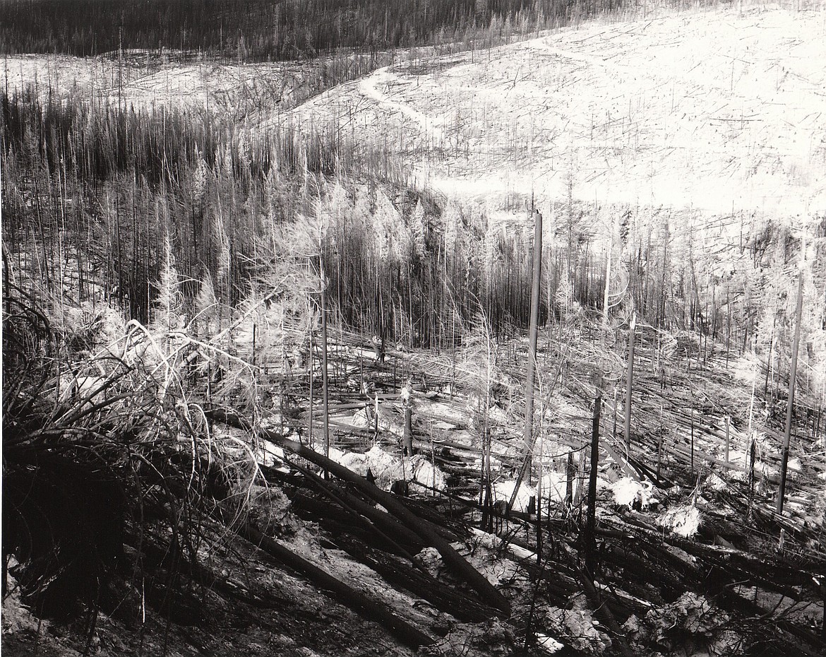 The Sundance Fire burned nearly 56,000 acres in August and September of 1967. The lightning caused fire ignited near the Sundance Mountain Lookout tower overlooking Priest Lake. Strong winds on Sept. 1 created a firestorm that blew the fire across the Selkirk Divide and into the Pack River drainage. In a matter of eight hours the fire consumed a swath of timber eight miles wide and 16 miles in length.