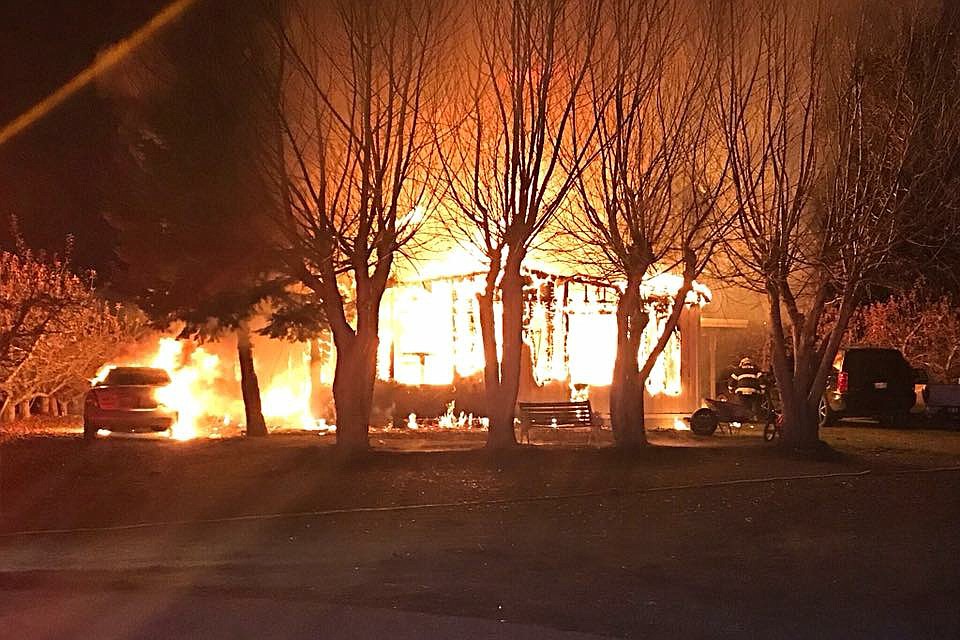 About 9:30 p.m. firefighters with Grant County Fire District No. 13 responded to a report of a house fire in the 6300 block of Road B Northwest. Firefighters responded to the scene and found a residence and vehicle engulfed in flames.