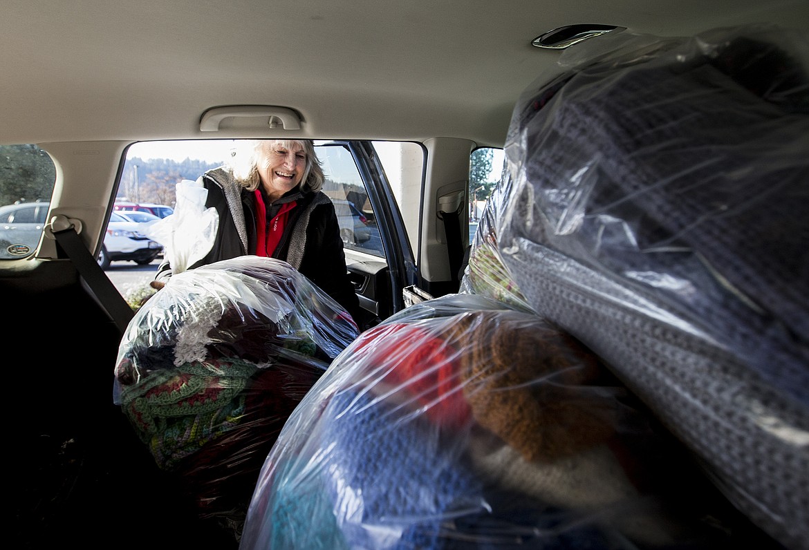 A few of those responsible for the knitting helped haul the bags to vehicles that would send the cozy goods to 14 different Kootenai County nonprofits.
