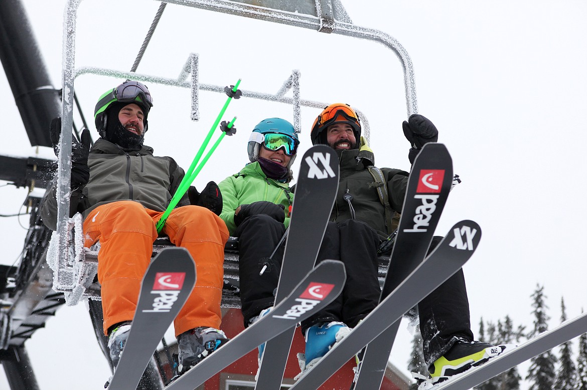 Whitefish Mountain Resort ski patrollers head up the recently opened chair 5 on opening day, Dec. 7. (Mackenzie Reiss/Daily Inter Lake)