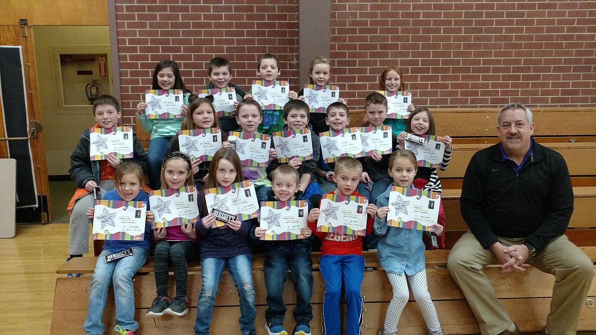 Top row from left: Isabella Spedalieri, Tom ONeil, Hunter Tifft, Jaeda Estes and Melena Brownfield. Middle row: Coheed North, Riley OMahoney, Buck Coe, Ty Cheney, Levi Brown, Ayden Weske and Analeigh Miller. Front row: Isabella Spedalieri, Tom ONeil, Hunter Tifft, Jaeda Estes, Melena Brownfield and principal Mike Groves.