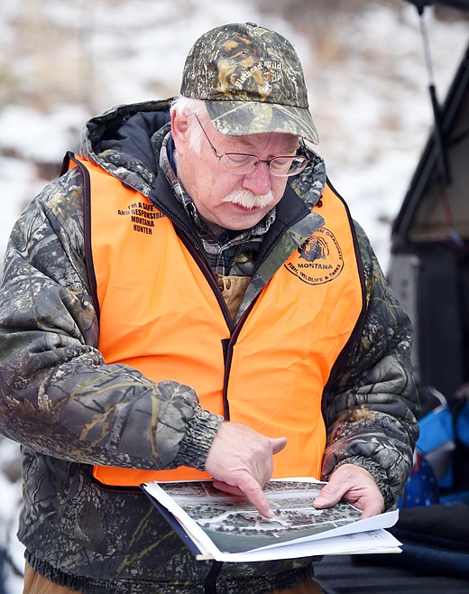 Jim Vashro, president of Flathead Wildlife, Inc., explains the public access lane boundaries at a cleanup day with Fish, Wildlife and Parks on Friday morning, December 15, at McGregor Lake.(Brenda Ahearn/Daily Inter Lake)