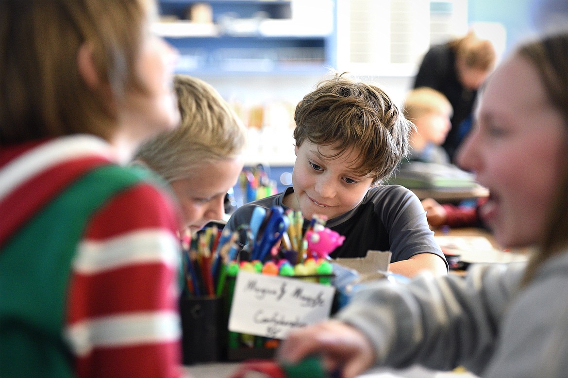 Breaking the class up into small groups is one of the teaching strategies in Mrs. LaCasse’s fifth-grade classroom at Elrod Elementary School. (Casey Kreider/Daily Inter Lake)