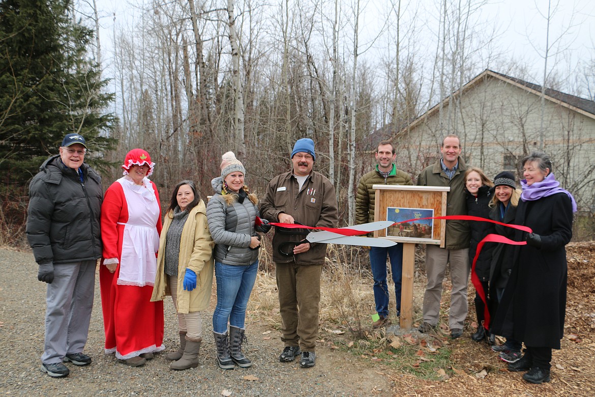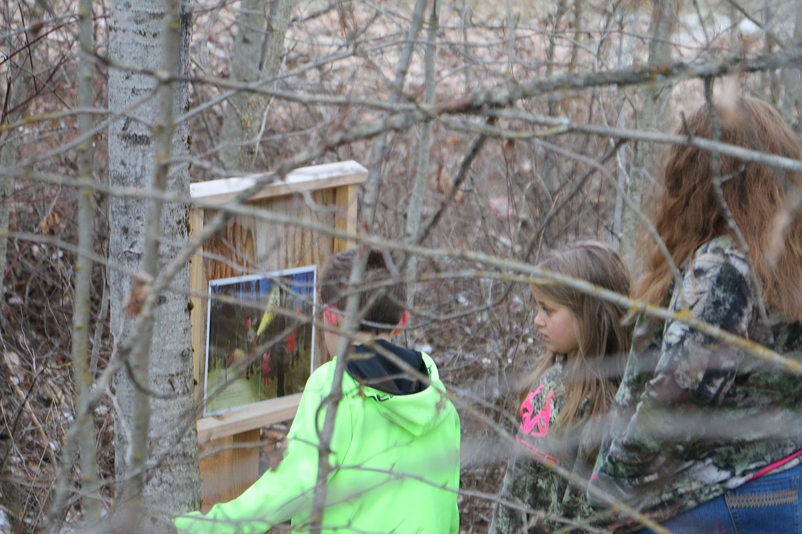 StoryWalks encourage children — and adults — to explore, touch, smell, listen and enjoy. To create the StoryWalk, a children's book is deconstructed and the laminated pages are posted in wooden display boxes along a designated walking path. The stories are changed monthly. The first story along the McNearney Park path is "Night Tree," by Eve Bunting. Shortly after the ribbon-cutting, the group was joined by Kootenai Elementary School students who braved the chilly morning to read each page.