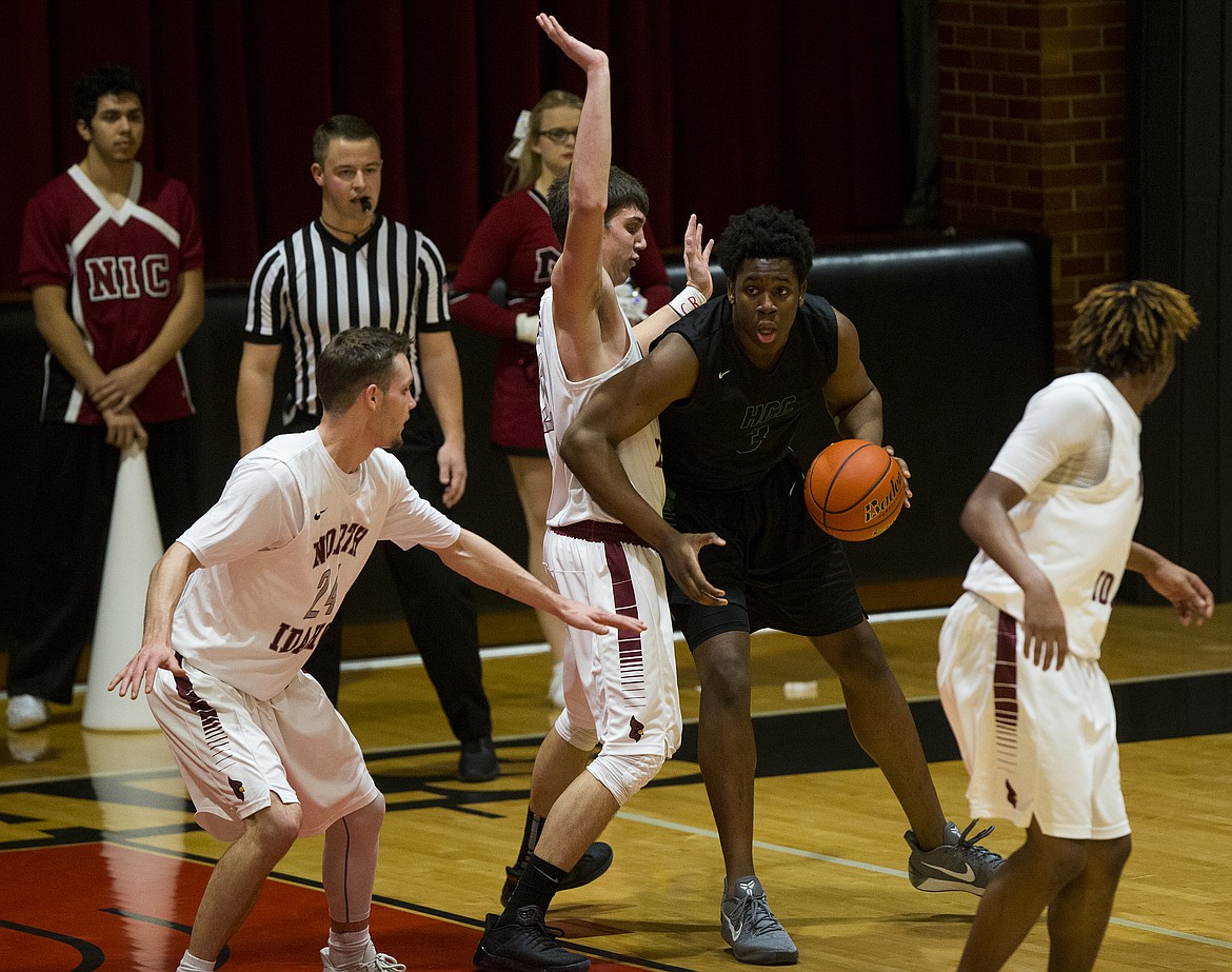 Halftime — NIC 39-35. 3-point goals — HCC 16-32 (Potter 1-1, Green 2-6, Singleton 3-4, Rothwell 6-9, Harris 2-6, Rice 2-4, Holmes 0-2), NIC 11-22 (Evans 3-3, Lundblad 0-1, Potts-Woods 3-8, McLaughlin 0-1, Brimhall 5-9). Rebounds — HCC 25 (Harris 7), NIC 37 (Evans 9). Assists — HCC 17 (Potter, Green, Rothwell, Harris 3), NIC 17 (Evans 4). Fouled out — Greene. Total fouls — HCC 12, NIC 14.