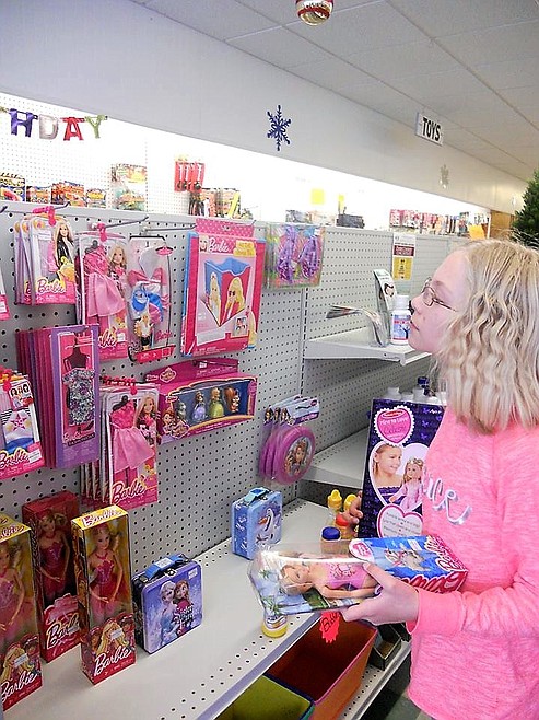 Each one of the 25 fourth-grade students received $37 to spend. The Women in Timber gave some gift ideas but the students mostly picked out what to buy. Gifts ranged from stuffed toys, to fishing poles, games, dolls, sparkly pillows, and snow caps.