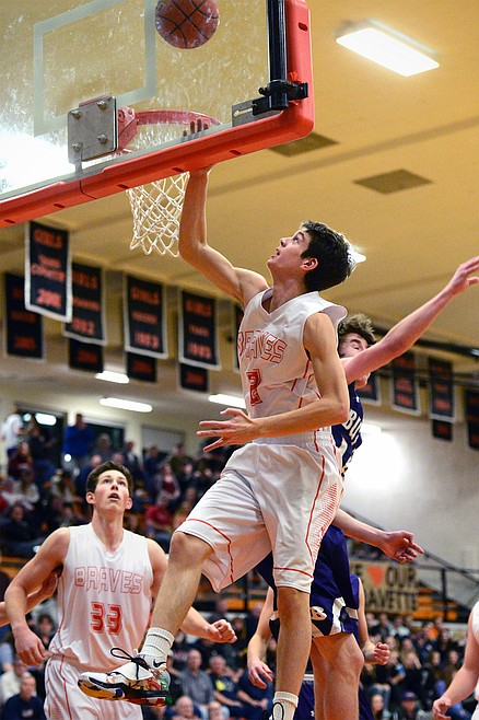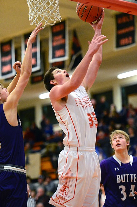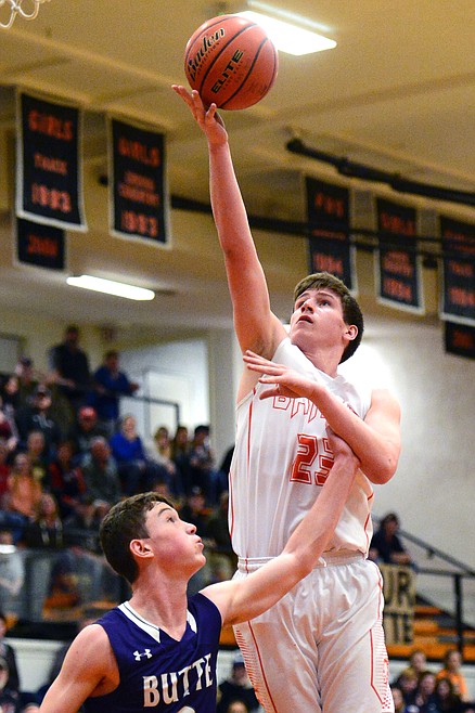 Flathead’s Sam Elliott lays in two points against Butte. (Casey Kreider/Daily Inter Lake)