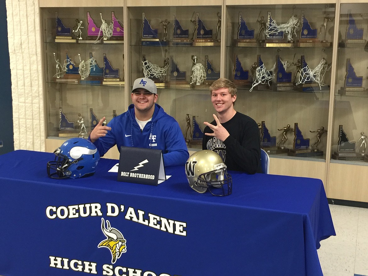 Three Coeur d’Alene High football standouts stayed true to their word, signing letters of intent Wednesday — the first day of the new early signing period in college football.