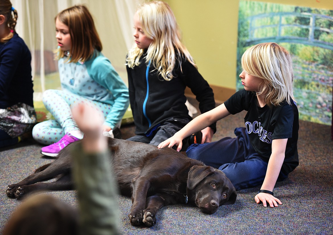 “A student was brought in and the student was able to sit down on the floor and read to Dexter — who is a wonderful listener — and the teacher can stand behind that student and check off fluency, comprehension, word count all while that student may not have been comfortable reading to a small group or the teacher,” Fiske said.