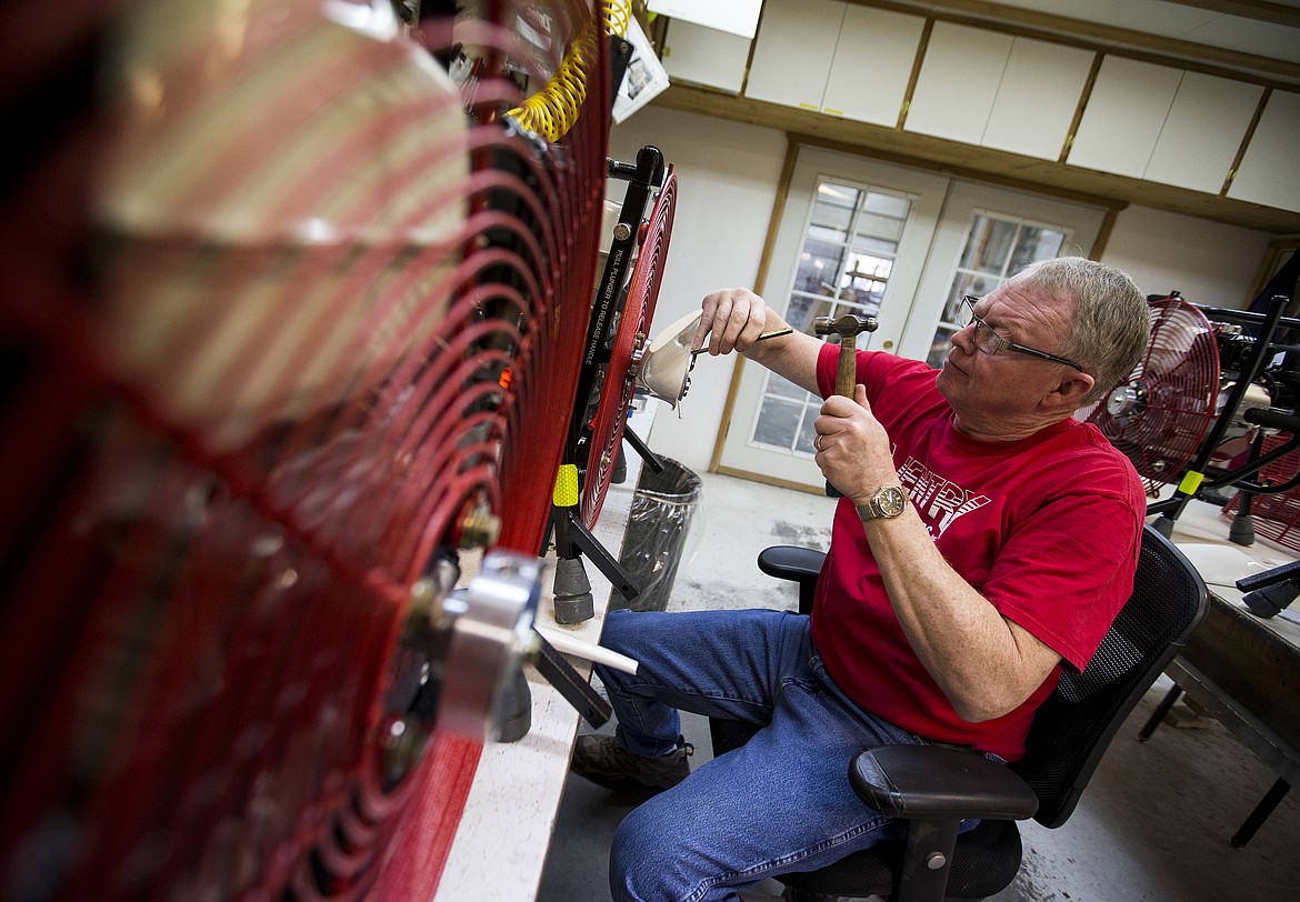 Spot-welding, including the fan guards and product frames, along with assembly of the products is done at the 3,000-square-foot Hauser Lake shop. The patented kevlar-fiberglass-wood composite propellers made with red cedar are light and safe. They’re cut with a machine at the business.