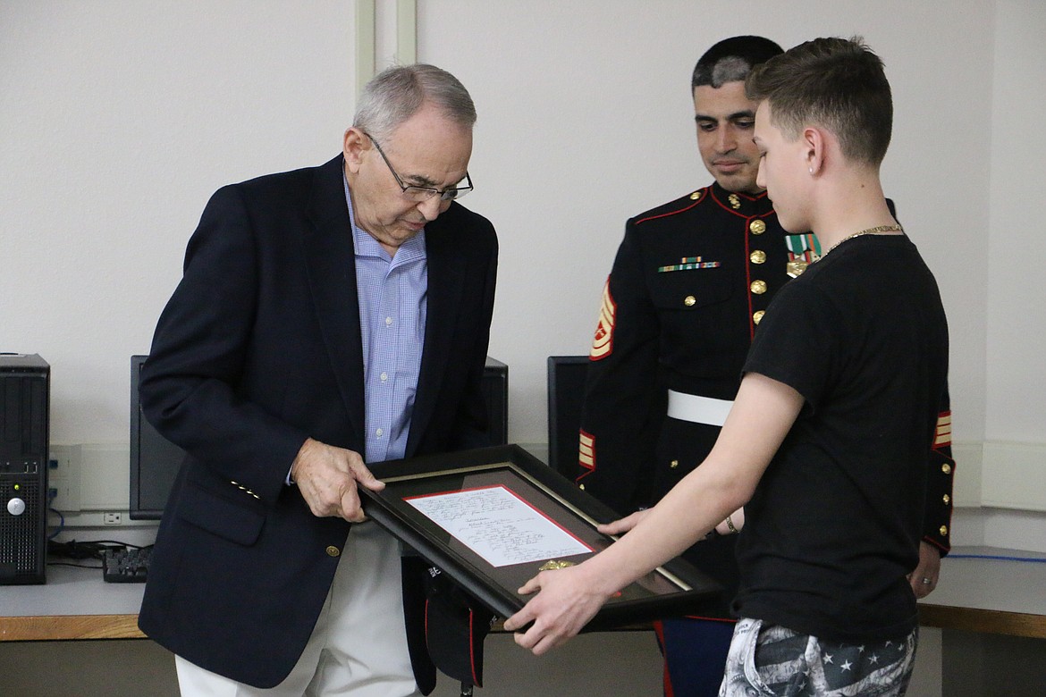 - Sandpoint High School Sophomore Ignacio Padilla was honored by United States Marine Corps and Korean War veteran Marvin Satuloff of Coeur d’Alene for a letter he wrote in SHS instructor John Nitcy's Honor Flight Club.