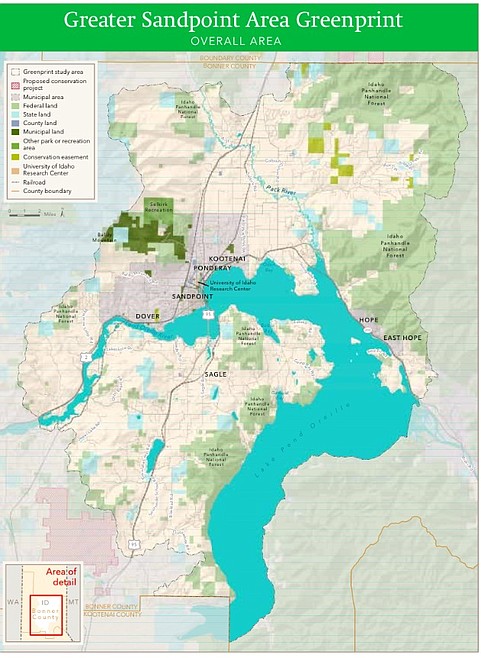 The Greenprint area includes Sandpoint, Ponderay, Kootenai, Dover, Hope, East Hope, and spanning even further into Bonner County to include much of the Idaho Panhandle National Forest and Selkirk recreation areas.