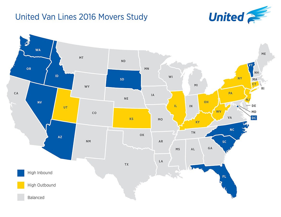 United Van Lines conducts the study to track the movement from state to state and understand why people move.
