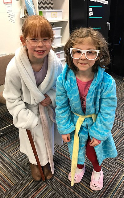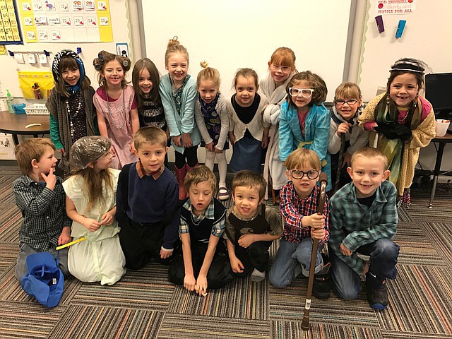 Plains school kindergarten and first graders dressed up like they were 100 years old to celebrate 100 days of being in school. The students brought canes, glasses and some even grayed their hair. All day long, activities were done to learn about the number 100, including making groups of 10 different things to make 100, trying to make a tower of 100 cups, and playing hopscotch to 100. The students were all very excited for the day, because they have been counting up to 100 Day party since the first day of school. The students pictured are from Miss Nagy, Miss Hillerman, Mrs. Junge and Mrs. Montgomery’s rooms.