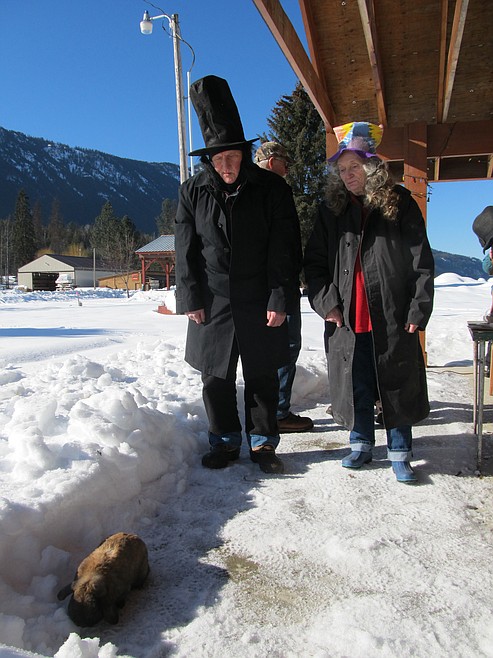 “It was Joe Weltz’s idea. Toby has the same coloring as a groundhog and he looks like one when his ears are down, Joe Webley stated. “It was a very cold and gorgeous day. We went to the park here and had a total of ten people attend since it was during the week many people were at work. To start we read about the very first Groundhog Day. We hope this will become an annual event here in Noxon.”