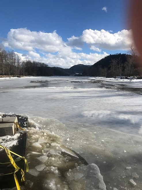Condon said the ice on the river has been 6 to 8 inches thick, whereas on Lake Coeur d'Alene to access the river it was 12 to 14 inches thick.