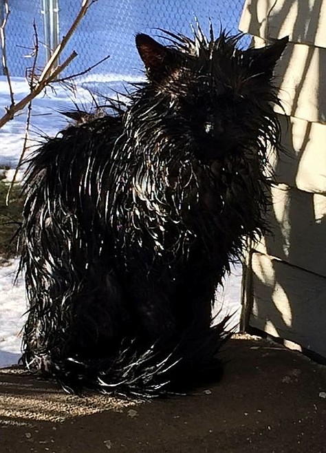COEUR d'ALENE — With a noose around its neck, a cat was dunked in diesel oil by some mean-spirited person.