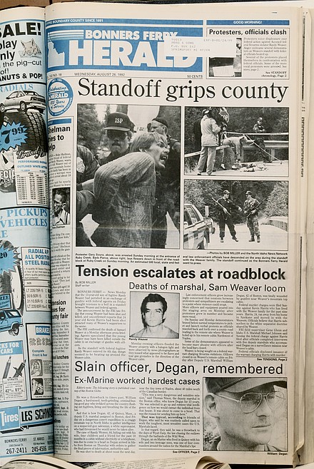 On the morning of Friday, Aug. 21, 1992, retired Boundary County Sheriff Bruce Whittaker was initially notified that there had been shots fired in the area of the Weaver cabin that had resulted in the death of deputy U.S. Marshal Bill Degan. As events unfolded, law enforcement discovered that 14-year-old Samuel Weaver and his dog, Striker, had also perished. The subsequent standoff resulted in the wounded Randy Weaver and Kevin Harris as well as the death of Vicki Weaver.