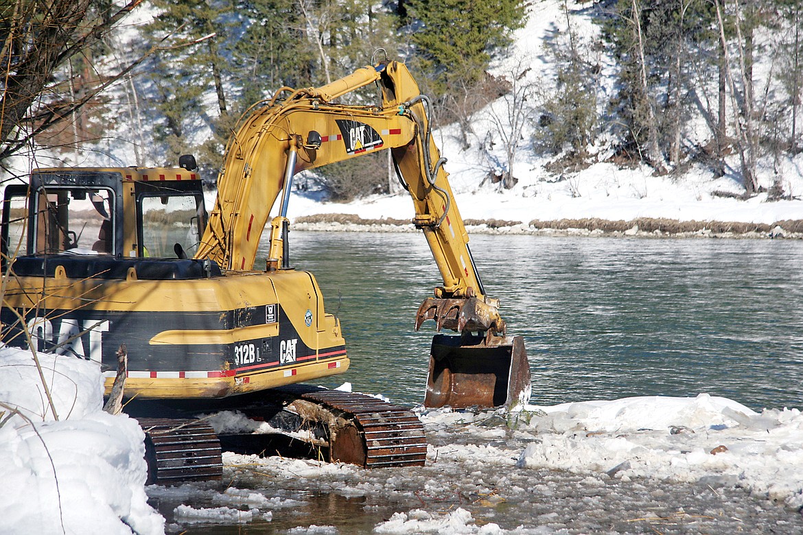 Operation Flower Creek commenced on Tuesday, and all week excavators have been travelling up the channel to dig away ice formations which have, at intervals, stopped the creek from flowing into the Kootenai River.