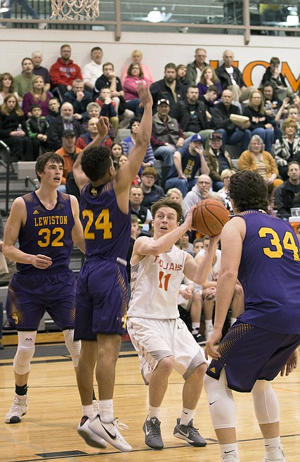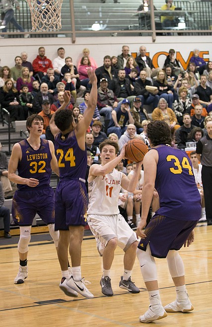 Lewiston 51, Post Falls 48: The Trojans jumped out to an 11-2 lead after four minutes on the strength of three 3-pointers, two by Jake Pfennigs.