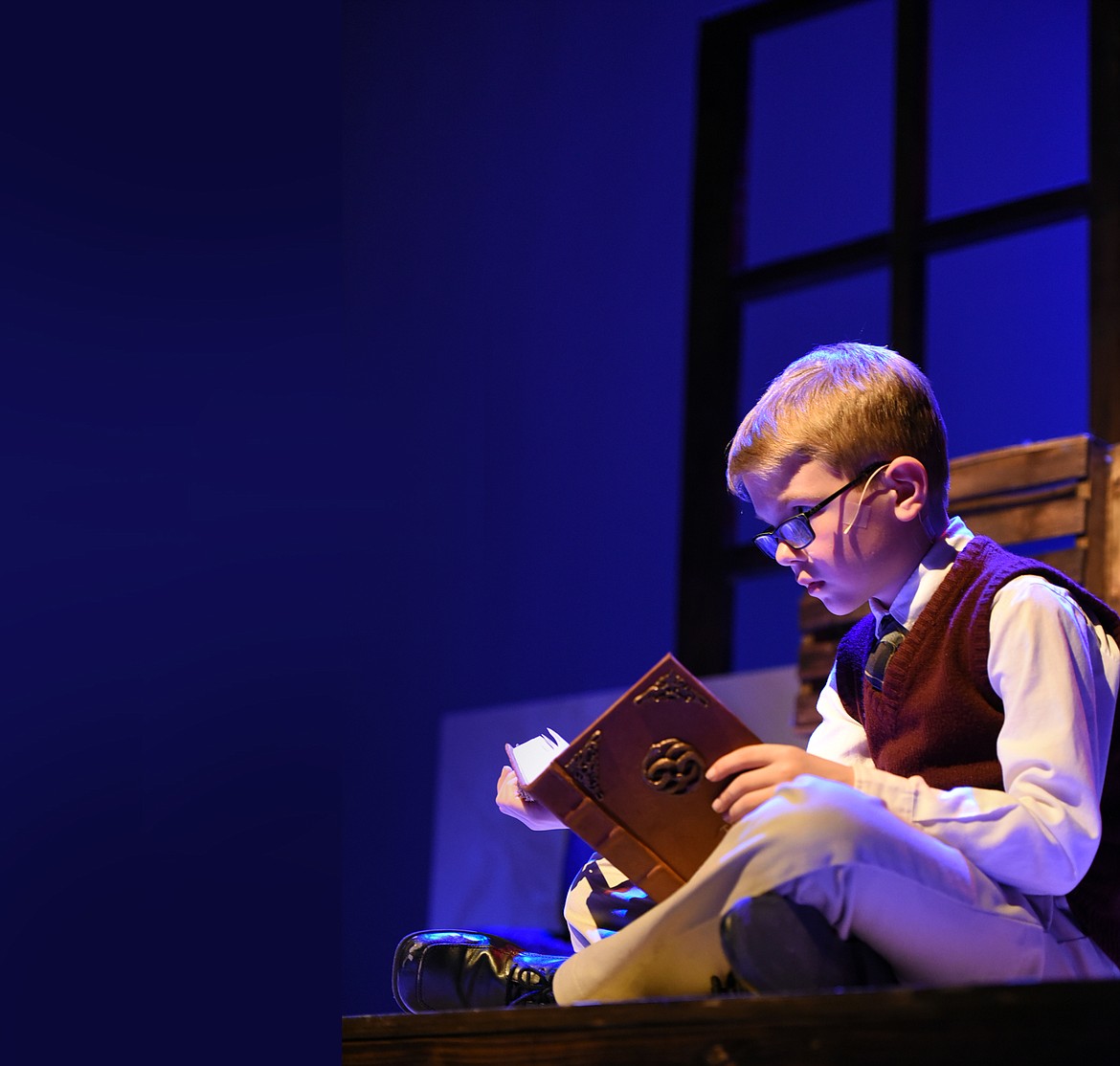 Fauth’s character, Bastian, stays mostly in one spot during the play, reading from the book “The Neverending Story” he discovered in a bookstore while seeking refuge from his troubles. Atreyu, Schumacher-Sundberg’s character, has plenty of action — flying atop Falkor and trying to rescue the Childlike Empress.