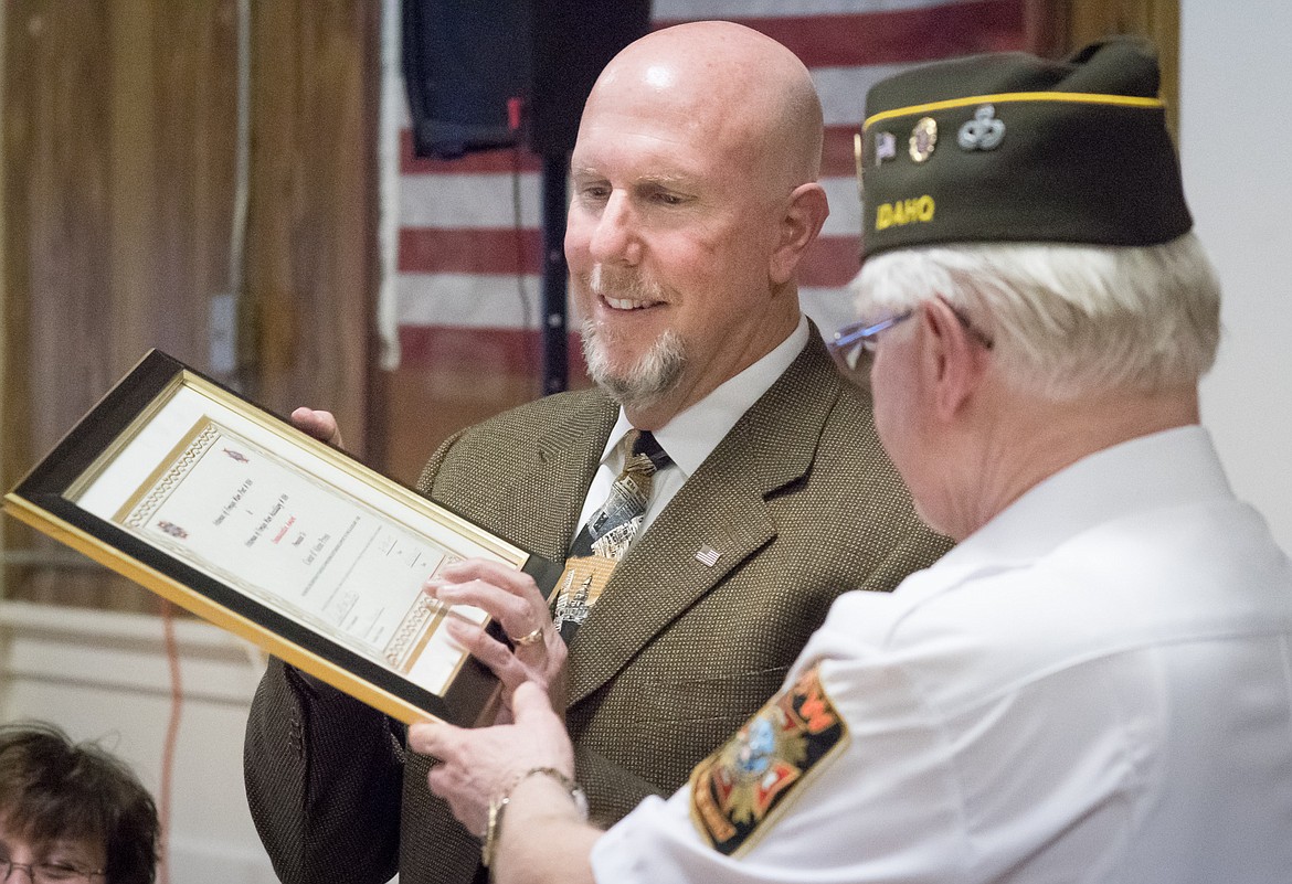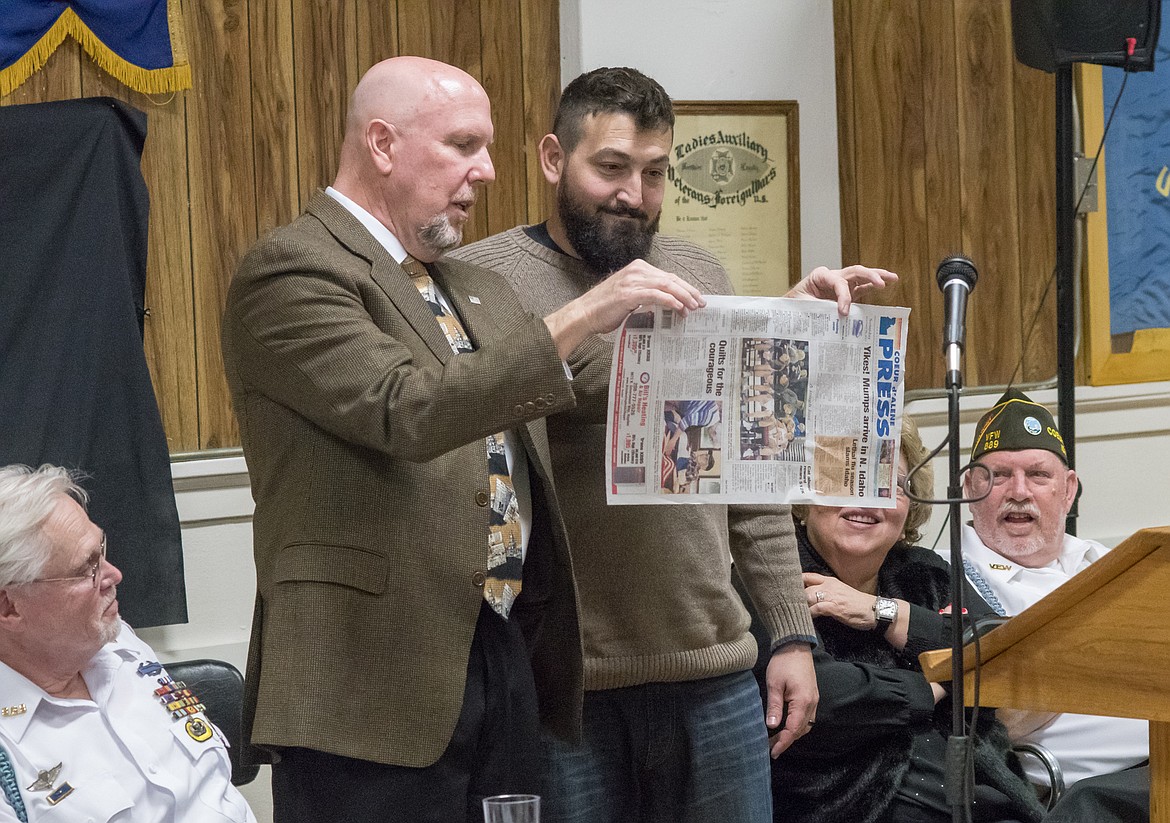 Bob Martin, post commander, presented Riley with a plaque from Post 889 to The Coeur d’Alene Press in appreciation for all its support over the last year.