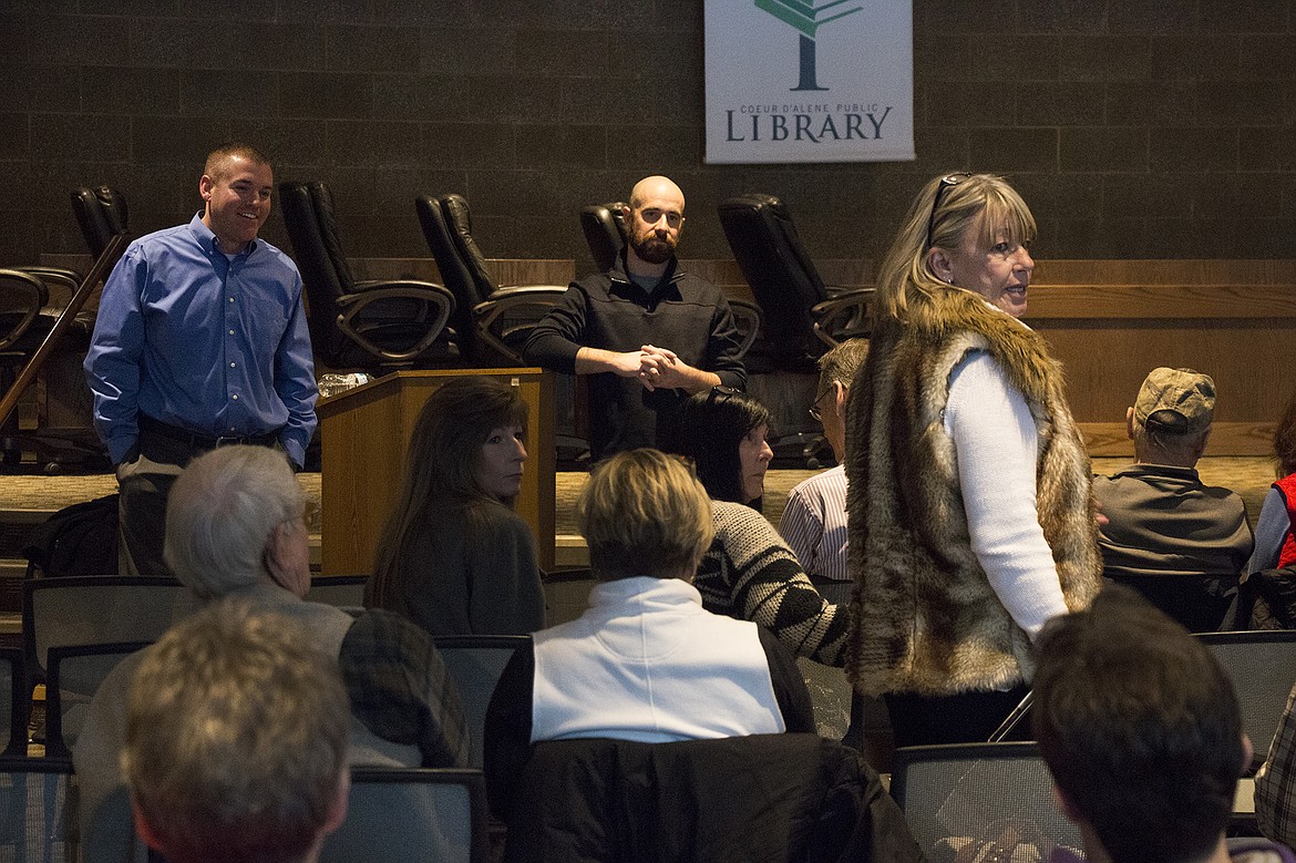 More than 80 community members showed up at the Coeur d’Alene Public Library to listen to Amador and Malek talk and to voice their opinions on education, animal abuse, health care and poverty among other concerns.