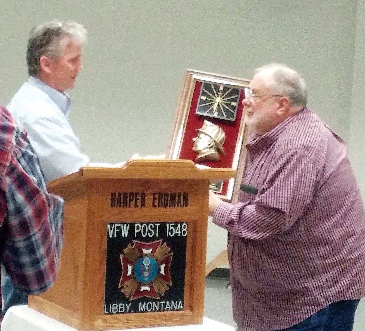 When Libby fire chief Tom Wood was presented with a commemorative plaque last week, his crew, and the whole community, were able to show their respect for a dedicated volunteer and leader.