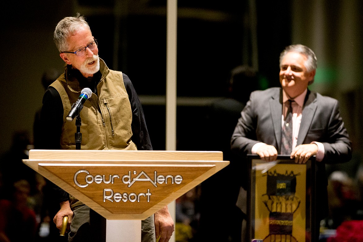 Jennifer Drake, speaking as chair of the Coeur d’Alene Arts Commission, asked the crowd gathered at the Hagadone Event Center to think about art in Coeur d’Alene. Then she asked the crowd members what they were thinking about. The resounding answer was “Steve.”