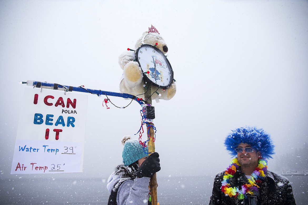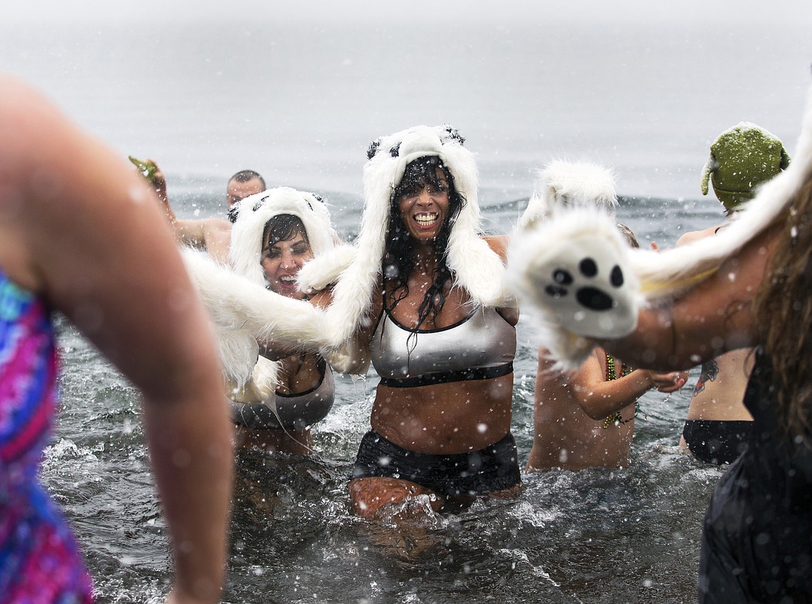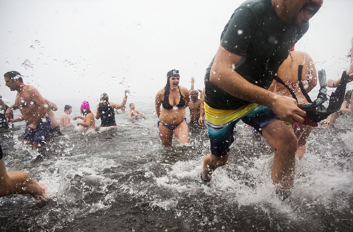 One of the snowier Polar Bear Plunges in recent history, the annual freeze fest saw bikini-clad and shirtless locals jump into 39-degree water at noon on New Year’s Day as their soaked bodies then felt the sting of 25-degree air temperature.