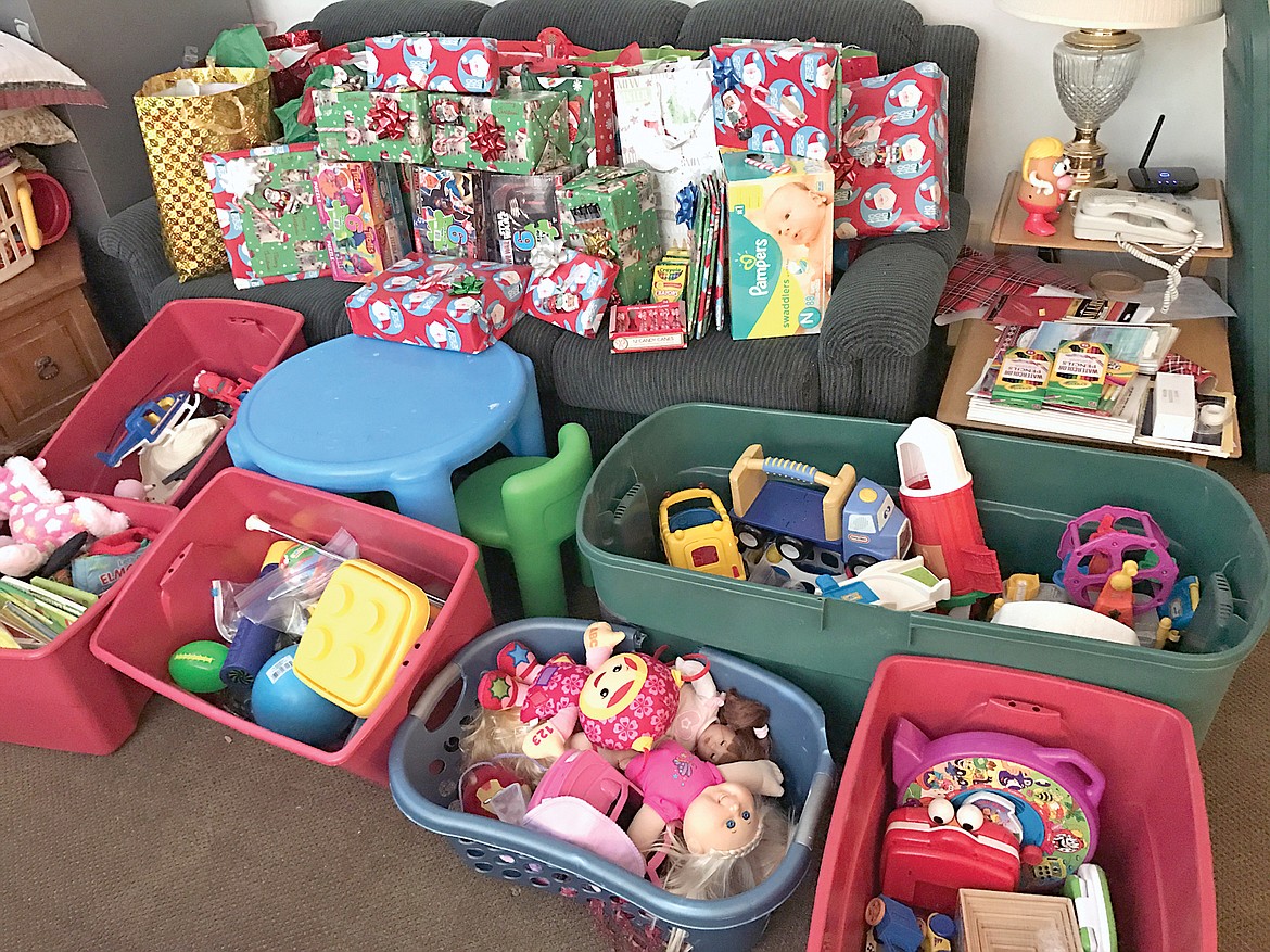After asking for donations in the paper in mid-December, 15 families have dropped off bags with children and adult clothing, toys and toiletry items which include diapers.