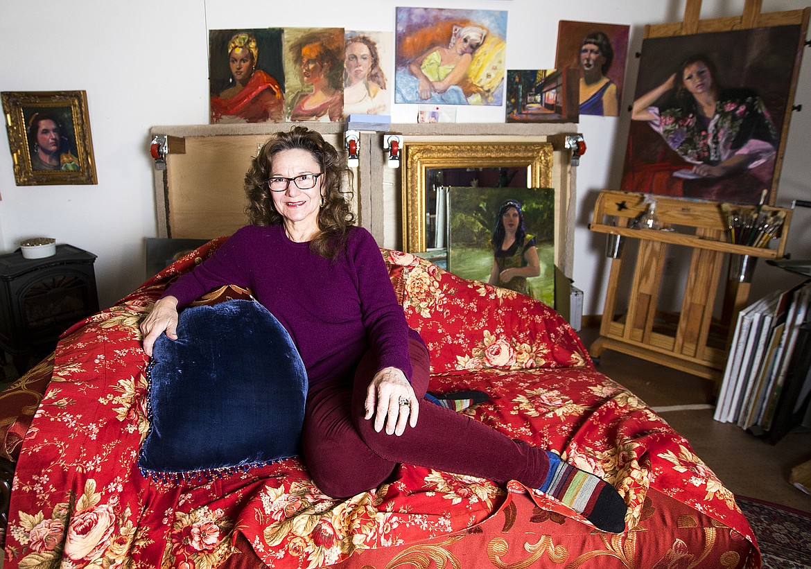 Blakemore conducts her painting in a little Coeur d'Alene house that she has turned into an art studio. The walls serve as the gallery for dozens of paintings and the entire space is dedicated to art. She uses live people as models but also paints nature and flowers, city scenes and whatever compels her to place the paintbrush on the canvas.