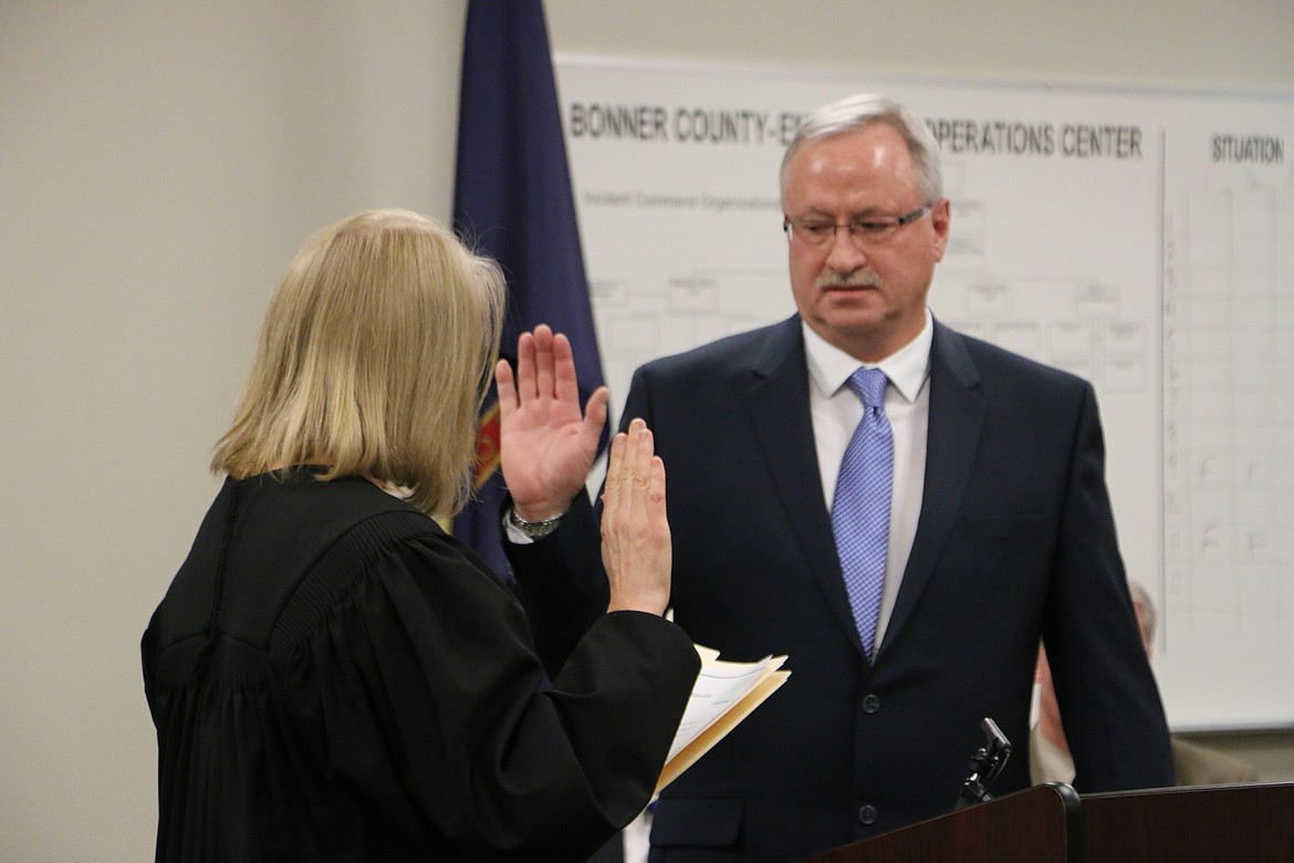 Bonner County Sheriff Daryl Wheeler and Prosecutor Louis Marshall, both incumbents, were sworn into their respective offices during the ceremony as well.