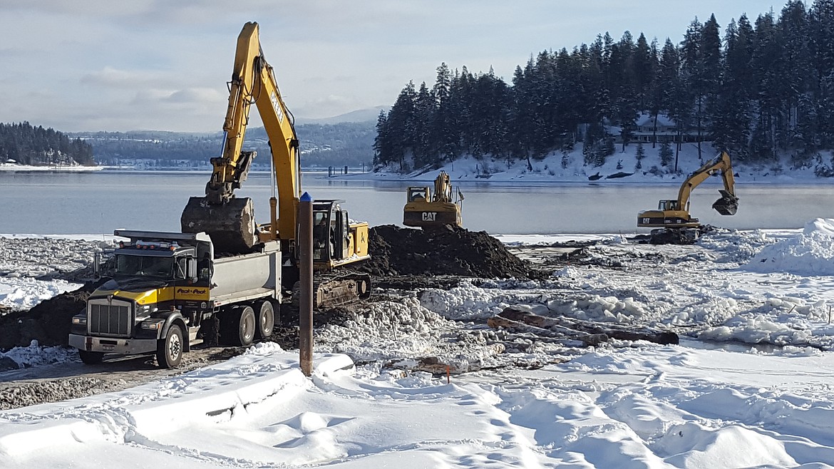 "We had to wait for low temperatures to bring the lake level down in order to clean up the bay," said Greg Peck, owner of Peck and Peck Excavating, which is contracted by Kootenai County to do the work. "This 10-degree weather is good for something. This only happens during cold temperatures."