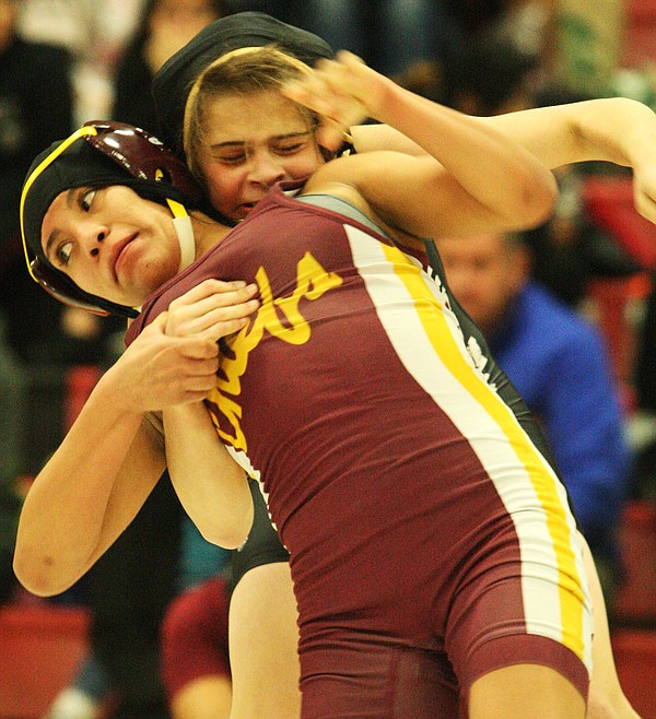 Erin Redford of White River showed the Columbia Basin why she was fourth at the Asics/Vaughan Junior Greco-Roman Nationals in Fargo, N.D., last July, beating Othello’s Nikki Velazquez for the 130-pound title at the Lady Husky Invitational. Redford, who is headed to Oklahoma State on a scholarship, was just too strong, with too much national tournament experience, but Velazquez held her own in a 11-4 loss.