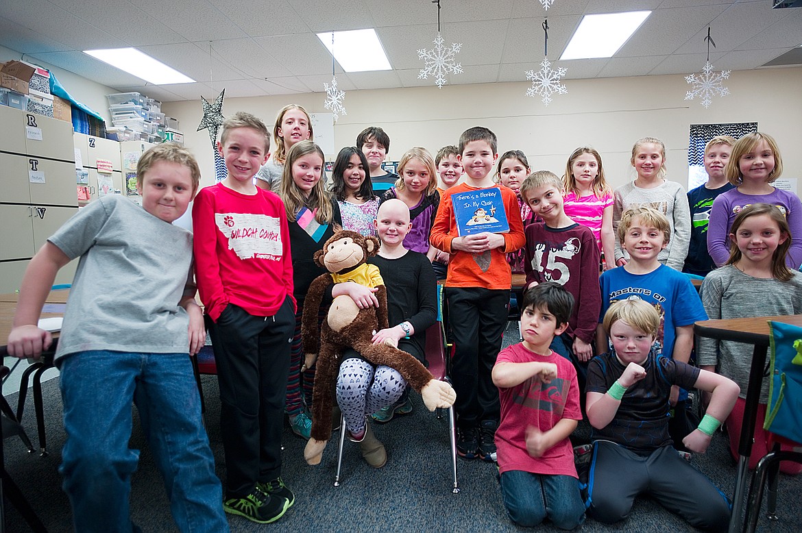 A big monkey, who they nick-named “Monkey Merrick” was put in Merrick’s chair in her class, to remind students that she would come back.